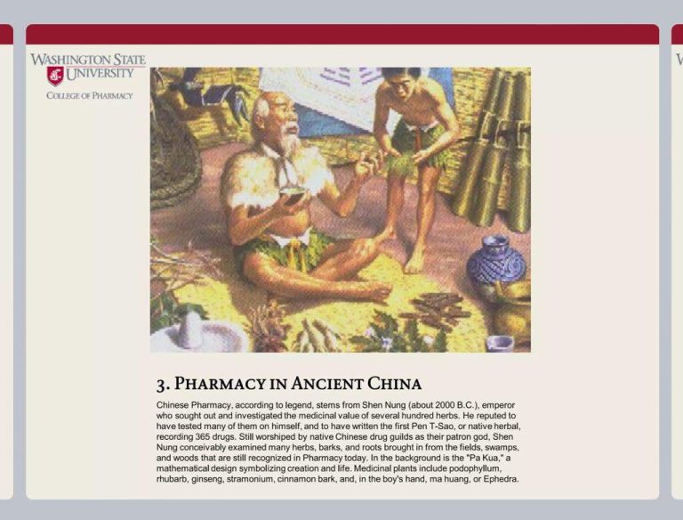 Çin Eczanesi, efsaneye göre M.Ö. 2000 civarında yaşamış İmparator Shen Nung’dan kaynaklanır. İmparator, yüzlerce bitkinin tıbbi değerini araştırmak için çaba sarf etti. Söylentiye göre birçoğunu kendisi üzerinde denedi ve ilk