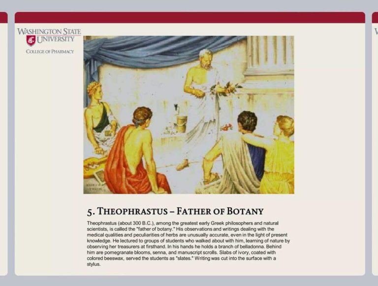Theophrastus (M.Ö. 300 civarı), en büyük erken Yunan filozoflarından ve doğa bilimcilerinden biri olarak kabul edilir ve “botaniğin babası” olarak adlandırılır. Bitkilerin tıbbi özellikleri ve özellikleriyle ilgili gözlemleri ve yazıları,