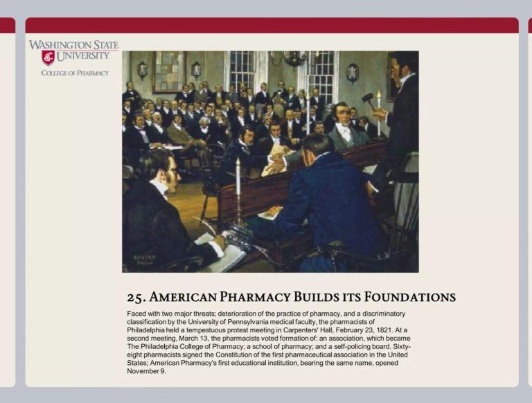 Eczacılık uygulamalarındaki bozulmayı fark eden ve Pennsylvania Üniversitesi’nin Tıp Fakültesi tarafından ayrımcı bir sınıflandırmaya maruz kalan Philadelphia’lı eczacılar, 23 Şubat 1821 tarihinde Carpenters’ Hall’da şiddetli bir protesto gösterisi düzenledi. 13