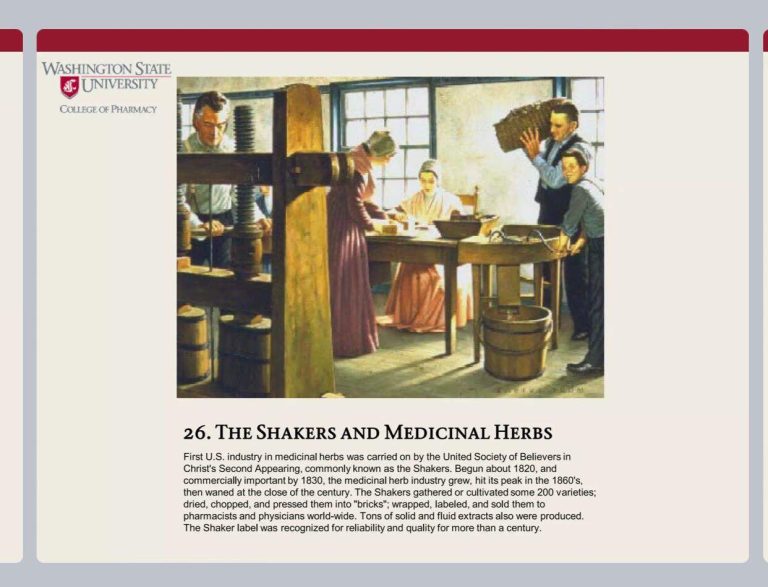 Şifalı bitkilerdeki ilk ABD endüstrisi, yaygın olarak Shakers olarak bilinen Mesih’in ikinci görünüşünde Birleşik İnananlar Derneği tarafından sürdürüldü. 1820 civarında başlayan ve 1830’da ticari olarak önemli olan şifalı bitki endüstrisi