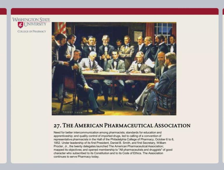 Eczacılar arasında daha iyi iletişim ihtiyacı; eğitim ve çıraklık standartları; ve ithal ilaçların kalite kontrolü, 1852 yılı 6-8 Ekim tarihleri arasında Philadelphia Eczacılık Koleji Salonunda temsili eczacıların bir kongresinin çağrılmasına