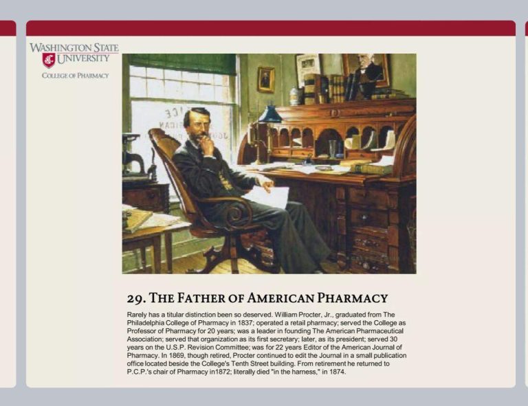 Nadiren bir unvan bu kadar hak edilmiştir. William Procter, Jr., 1837’de Philadelphia Eczacılık Koleji’nden mezun oldu; perakende eczane işletti; Kolej’e 20 yıl Eczacılık Profesörü olarak hizmet etti; Amerikan İlaç Birliği’nin