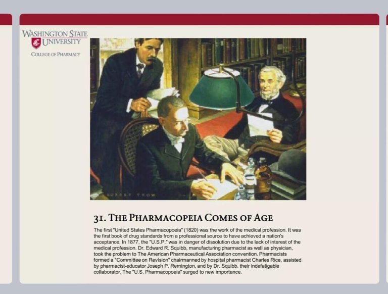 İlk “Birleşik Devletler Farmakopesi” (1820) tıp mesleğinin eseriydi. Profesyonel bir kaynaktan bir ulusun kabulünü sağlayan ilk ilaç standartları kitabıydı. 1877’de “U.S.P.” tıp mesleğinin ilgisizliği nedeniyle dağılma tehlikesiyle karşı karşıyaydı. Eczacı