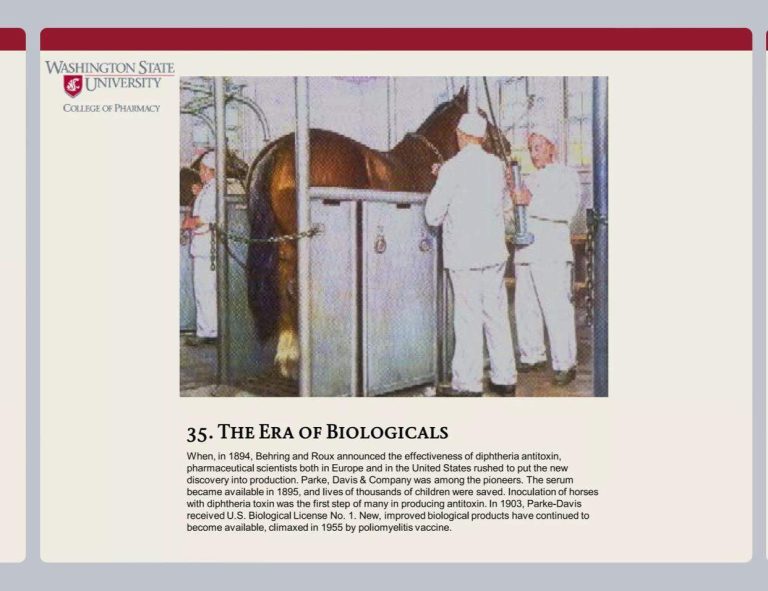 1984 yılında Behring ve Roux, difteri antitoksinin etkinliğini duyurduğunda, Avrupa ve Amerika Birleşik Devletleri’ndeki ilaç bilimcileri hemen yeni keşfi üretmeye koştu. Parke, Davis & Company, öncüler arasında yer aldı. Serum