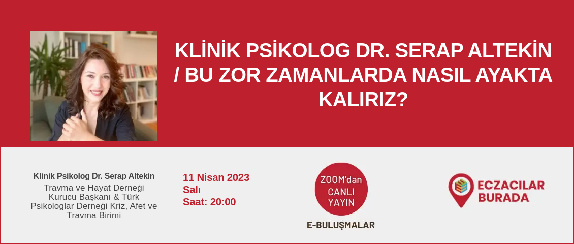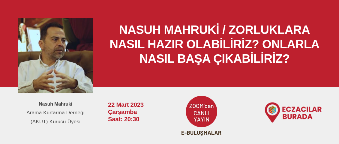 22 Mart Çarşamba akşamı Nasuh Mahruki ile “Zorluklara nasıl hazır olabiliriz? Onlarla nasıl başa çıkabiliriz?” konusunu işleyeceğiz. Hepimizi etkileyen deprem sonrası kendimize ve birbirimize en doğru şekilde nasıl yardımcı olabiliriz sorularını cevaplayacağız. Ali Nasuh MAHRUKİ, 21 Mayıs 1968’de İstanbul’da doğdu, ilk ve orta öğrenimini Şişli Terakki Lisesi’nde tamamladıktan sonra 1992 yılında Bilkent Üniversitesi İşletme Fakültesi’nden, […]