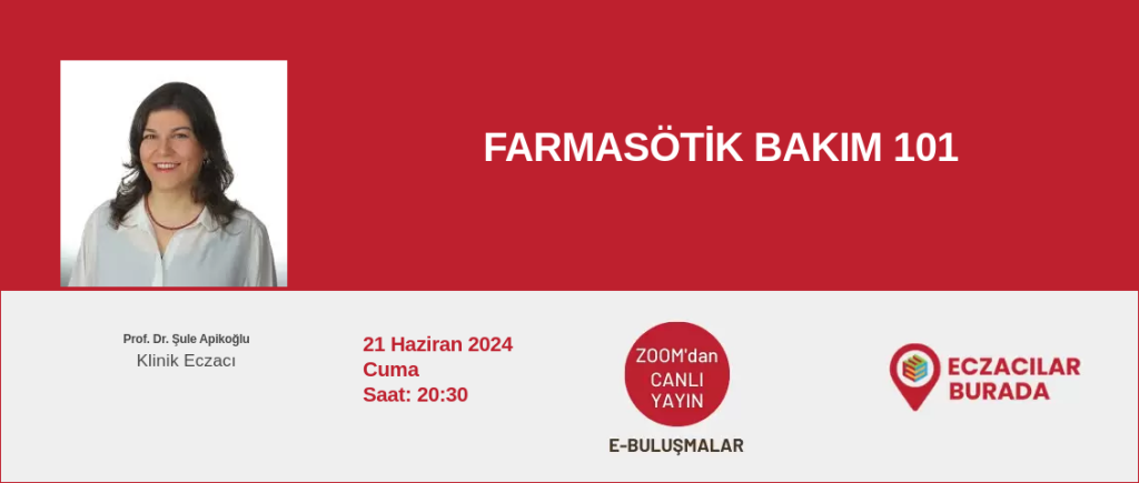 Farmasötik bakımın ne olduğunu, eczanelerde farmasötik bakımın nasıl düzenlenebileceğinin ve yürütülebileceğinin , hastaya hangi farmasötik bakımların yapılabileceğinin konuşulacağı etkinliğimize 21 Haziran Cuma günü 20.30’da sizleri de bekliyoruz.