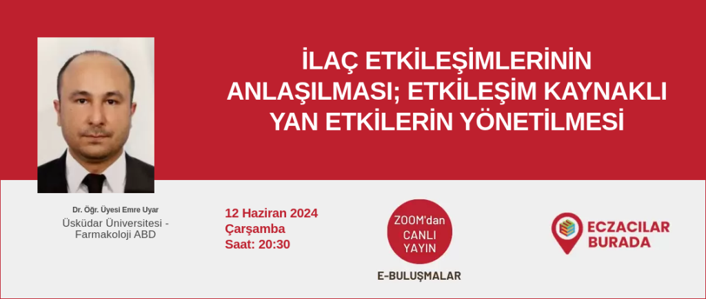 İlaç etkileşimlerinin olası yan etkileri, belirlenmesi ve yönetiminin konuşulacağı webinarımıza 12 Haziran Çarşamba 20.30’da sizleri de bekliyoruz.