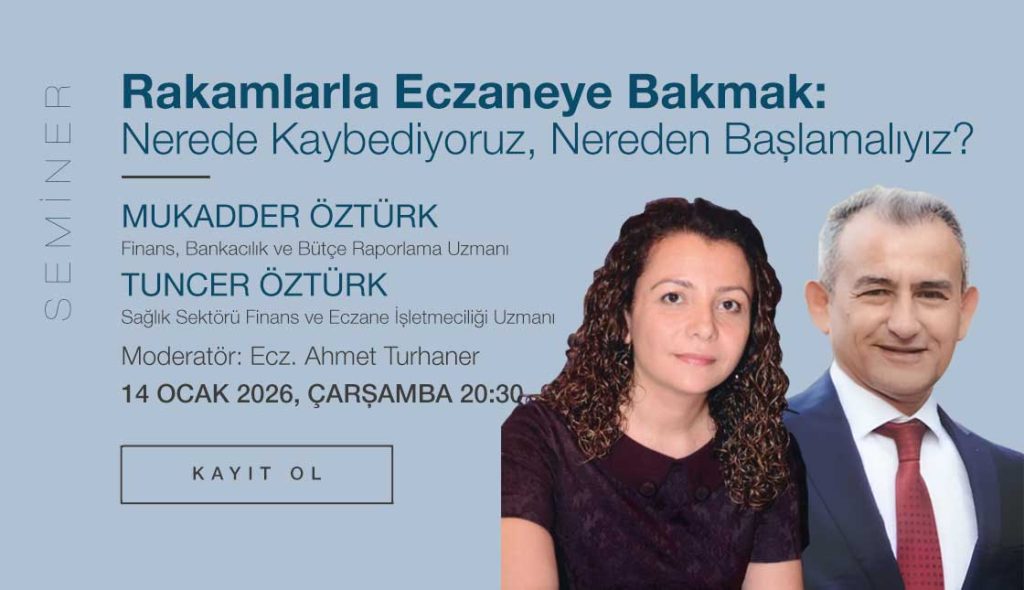 Rakamlarla Eczane Yönetimi, eczane eczacılarının finansal okuryazarlığını artırmayı, işletmelerini daha sürdürülebilir ve kontrollü şekilde yönetmelerini hedefleyen 8 oturumluk bir webinar serisidir. Seri boyunca eczane işletmeciliği; bilanço, kârlılık, stok, personel, depo ilişkileri ve yasal mali yükümlülükler çerçevesinde ele alınacaktır.